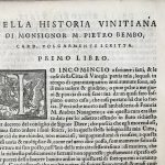 Commissioned by the Venetian Senate to Bembo, the present work is a continuation of Andrea Navagero’s History of Venice, which was first started by Sabellico, bearing the title ‘Historia rerum Venetarum ad urbe condita’ (“History of Venice from the foundation of the city”).