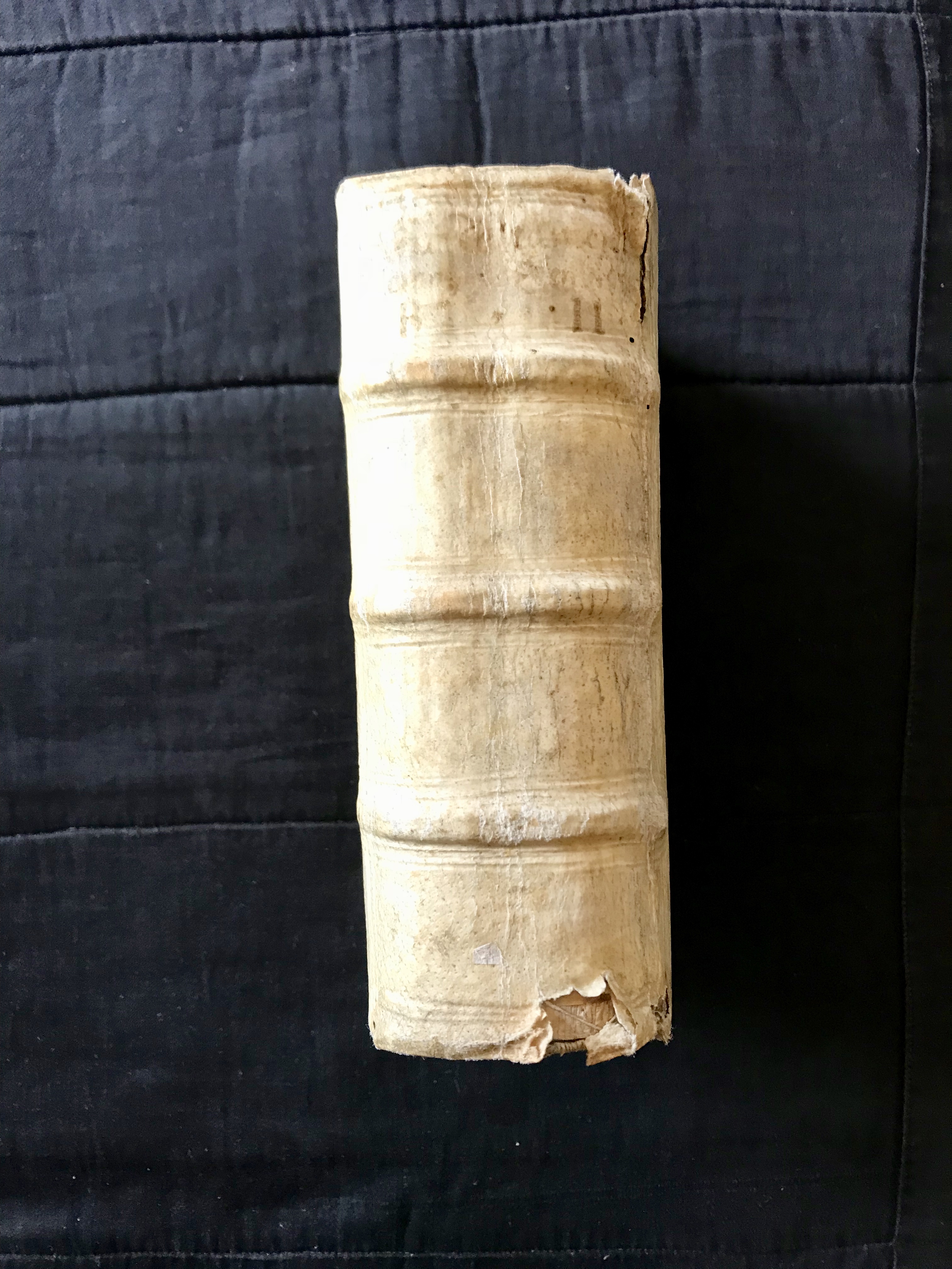 The decoration of the binding equally displays remarkable tooling. The central panel of front and rear covers is divided in four smaller compartments by double-fillet rulings, whereas the outer borders are beautifully decorated with medallions featuring four different profiles of Roman emperors. Contemporary tabs divide the textblock in smaller sections for an easy consultation. This copy has been held at the Library of the Church of the Birth of Mary of Rottenbuch (Bavaria), as inscribed on the title-page; and it was later purchased by Otto Schäfer for his library in Schweinfurt.