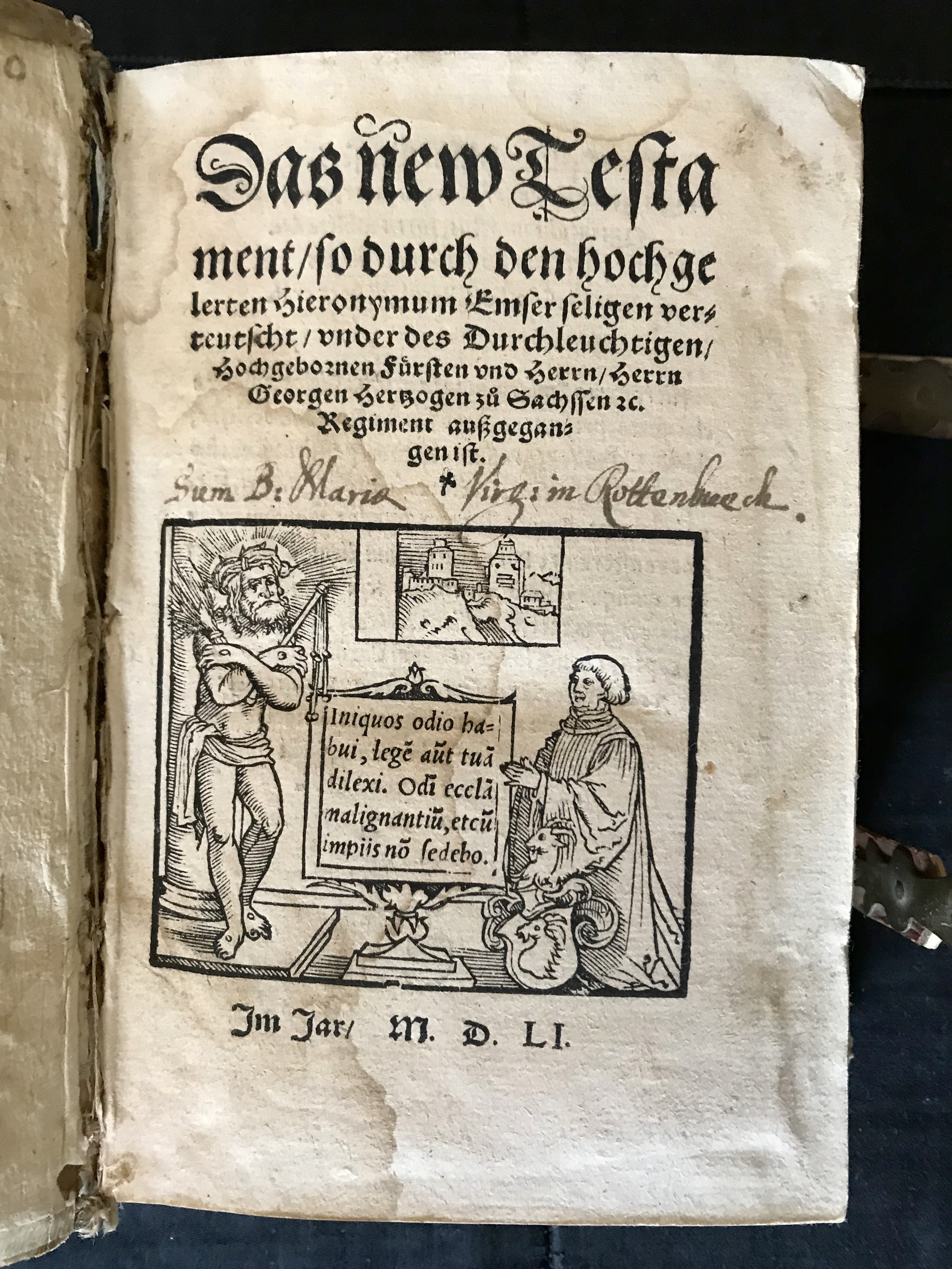 EMSER, Hieronymus (tr et ed.). Das new Testament durch hochgelerten Hieronymum Emser seligen verteutscht.