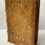 8vo, pp. [16] 778 [22], aa8 a-z8 A-Z8 Aa-Dd8. Italic letter, some Roman, sporadic Greek. Historiated initials, lacking title-page in black and red with woodcut border. Occasional early marginalia, ms. date “1789” next to colophon (Cc5v). Wormhole to lower gutter throughout, not affecting text. Light soiling and dampstaining to margins. Bookplate of Hungarian lawyer Joannes Sza’sz on aa2v and of notary public Carolus Susich on verso of last leaf. Bound in contemporary blind-tooled pigskin over boards with rolls of personified virtues (faith, hope and justice) framing central panels on covers: on front, Christ on the cross, Moses, John the Baptist and a verse from John’s Gospel underneath (1:29): “Ecce agnus dei qui tollit peccata mundi” (compare with EBDB p002865 on Einbandatenbank), plus owner’s initials “P. A. B.” and date “1560” stamped in black. On the back, Christ resurrected and triumphant defeats Satan represented as a snake, or a dragon symbolising Evil, and a biblical verse (Hosea, 13:14): “ero mors tua o mors” (see EBDB p001637). Re-hinged using remains of a German Gothic bible as pastedowns, paper repairs to upper corner of first two initial leaves, last leaf laid on endpaper. A beautiful binding.
