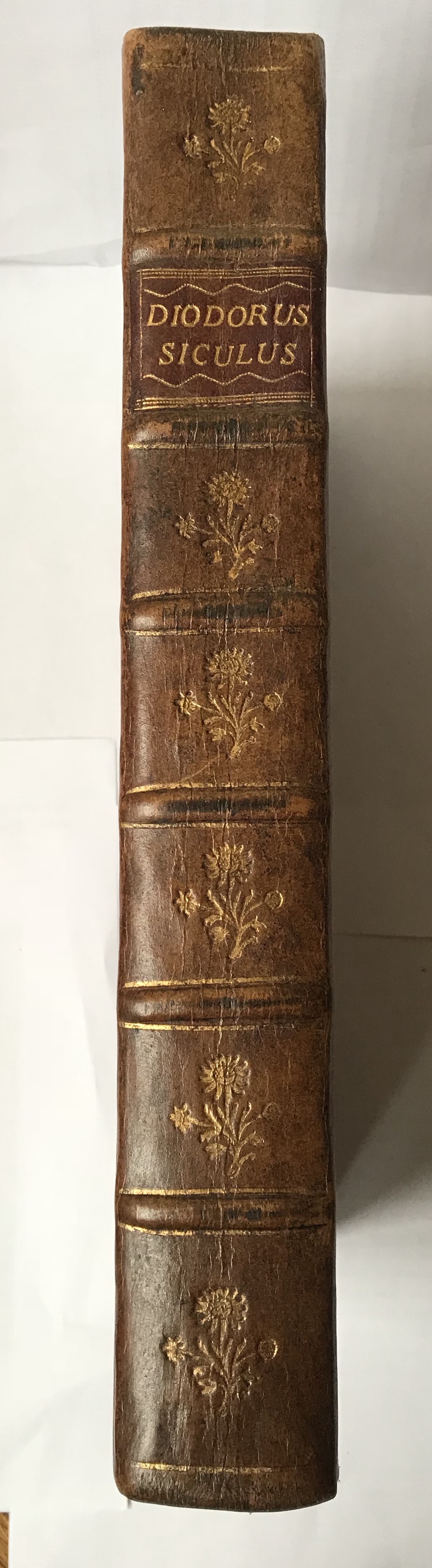 Editio Princeps of most of Diodorus’ texts: books 1-5 (represented as 1-6 in early eds., as 1 was divided into two parts) and 11-15 (books 16-20 only having been published by Oporinus in 1539). Contains many traditional travel books, including Ctesias’ and (in book 5) an account of the lost Historia Sacra of Euhemerus (c. 300 BC), with its “mythographic” and elaborately detailed descriptions of imaginary islands in the lower Red Sea. Latin preface devoted to the ‘typographus’ Ulrich III Fugger, who edited the text. Fugger was a patron for the printing of many Classical editions. Diodorus Siculus flourished during the 1st century BC in Agyrium, Sicily. He was a Greek historian. The present work includes parts of his universal history. Known in Latin as Bibliotheca Historica, it ranged from the age of mythology to 60 BC.