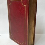 16.o, pp. iv, 250, iii. Contemporary dark red straight-grained morocco; covers with single gilt rule border, gilt central panel with inverted corners; smooth spine in six compartments: gilt lettered in one, a repeated gilt pattern of circlets and dots in the other; board edges and turn-ins gilt, light blue watered silk linings, silk doublures with gilt vine border and roundel cornerpiece ornaments, g.e., joints cracked, slight rubbing, front free endpaper loose. PRINTED ON VELLUM, ONE OF TWO COPIES extra to the LIMITED EDITION of 25 copies on papier vélin.