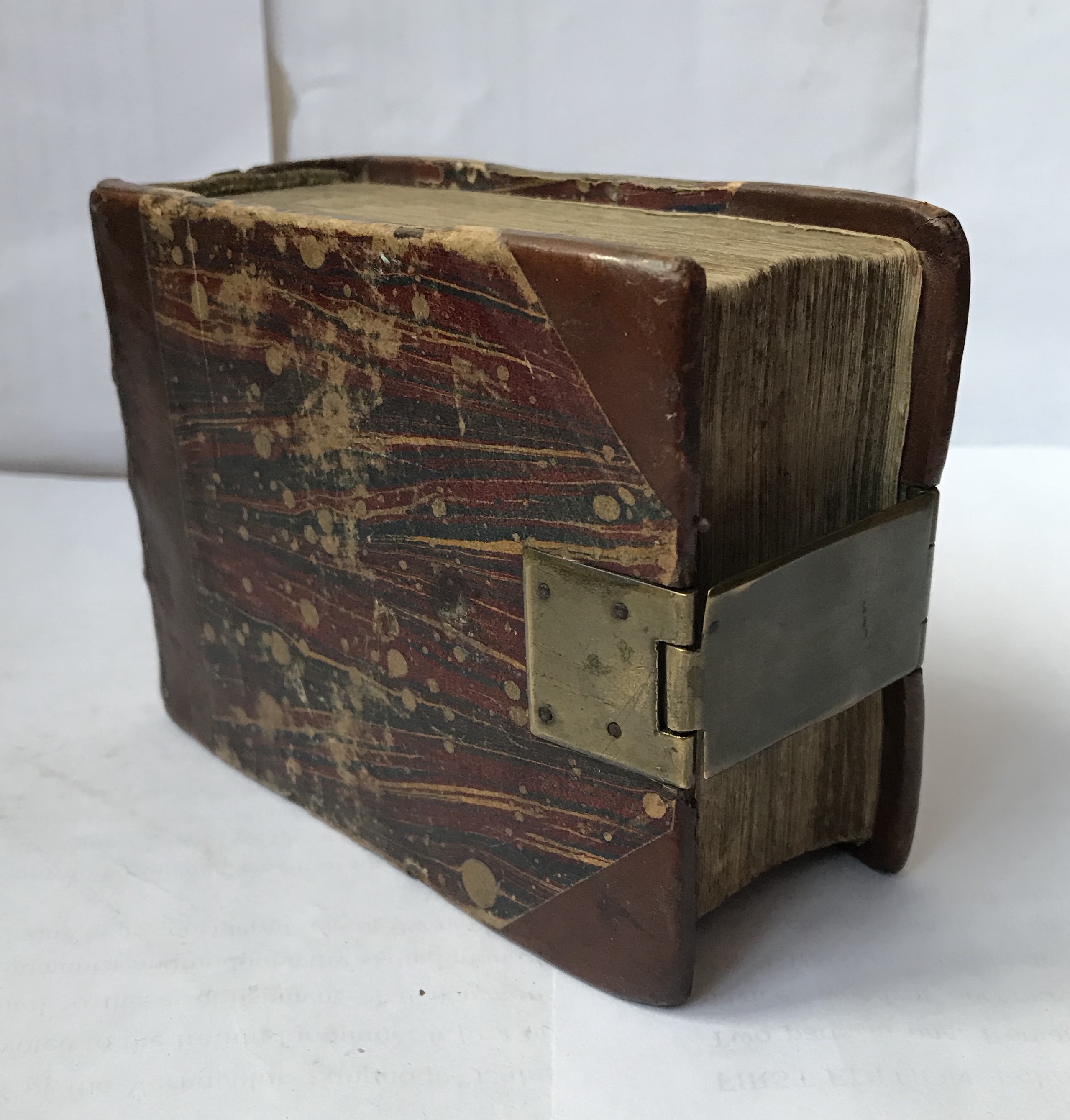 FIRST ILLUSTRATED EDITION. Oblong 8vo, pp. 361 (xxiii), A-Z8, a8, final blank. Italic letter, some Roman, sporadic Greek. Title within elaborate engraved border divided in four sections with figurative scenes from the poem, portrait of the author and 178 full-page plates; plate number 176 (p. 357) bears the signature of the artist Pierre Van der Brocht. Printer’s device on Z5 showing God’s right hand descending from the heavens and holding a compass with motto in cartouche: “labor et constantia”. Clean tear from top towards centre of leaf to Q3, small wormholes to lower margin of final quires, no loss of text. Each leaf of the book is alternated with a blank leaf on which appears a ms. C19th English translation, or paraphrase, of Lactantius’s “argumentum” up to Fable IX, Book 1. In C19th half calf and marbled paper over boards, brass clasp and catch, gilt spine with title and initials “J.B.”.