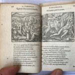 16mo, pp. 352, A-Y8, wanting the two initial leaves, which include the title page. Italic letter, a little Roman. Printer’s device on t-p (lacking); portrait of the author (missing), 222 woodcuts, 90 medallions with ancient figures and profiles, devoted to the eminent collector Jean Grolier; engraved by A. Nicolai, C. Muller and G. Van Kampen after Pieter Huys et Lucas de Heere. Capital spaces with guide-letters, tailpieces. Two wormholes throughout outer blank margins, one going through the whole text block, no loss. In modern blind-ruled panelled calf, joints cracked, spine skilfully rebacked, a.e.r. A crisp copy, unfortunately incomplete.