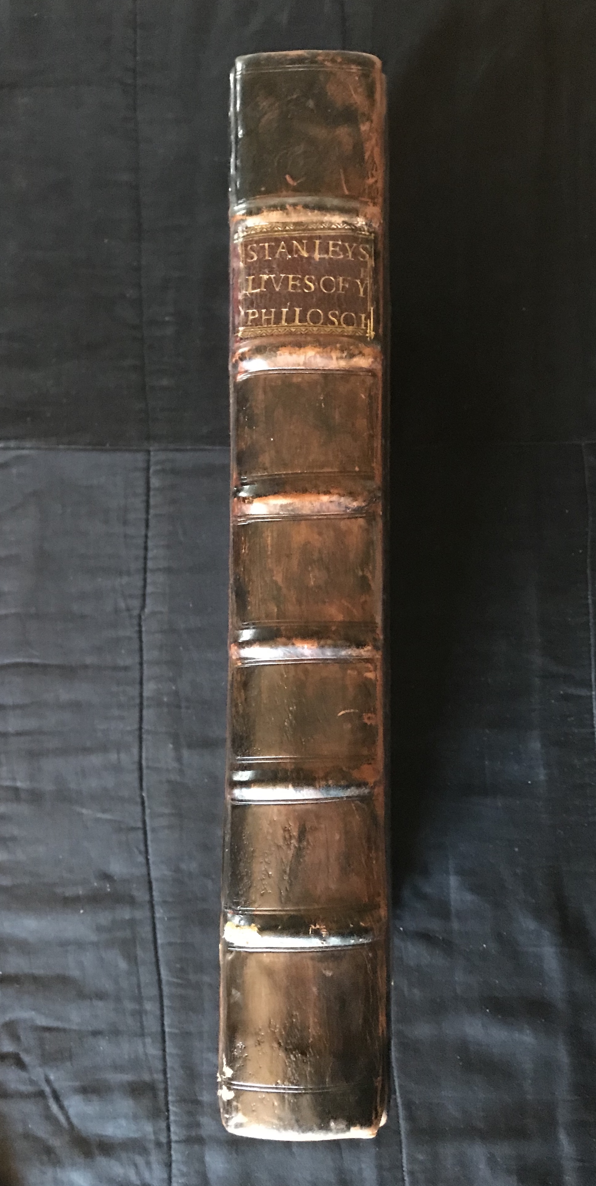 “In its account of ‘Those on whom the Attribute of Wise was conferred’ in antiquity, with particular attention to Thales, Solon, and Socrates, the first volume established the pattern of “Lives and Opinions” followed in the later volumes. Volume 2 […] included detailed accounts of the philosophical doctrines of Plato, Aristotle, and Stoicism […] and volume 3 […] encompasses Pythagoras and the pre-Socratics, Scepticism, and a particularly detailed and sympathetic account of Epicureanism […] In these three volumes Stanley sought to give a comprehensive account of the various schools of Greek philosophy, in as impartial a way as possible. A fourth folio volume, The History of the Chaldaick Philosophy […] is briefer and more tentative in treating the occult learning of ancient Egypt, Babylonia, and Persia […] Stanley’s History of Philosophy was accepted as a standard authority for many years”. Warren Chernaik, ‘Stanley, Thomas’, Oxford Dictionary of National Biography, LII, pp. 240–243).